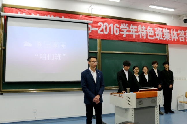 在每个班的介绍后,紧接着是现场答辩环节。评委的提问尖锐而有针对性,各班对学风建设、班级凝聚力、寝室建设、班级干部作用的发挥、特色工作开展等典型问题进行了精彩而有趣的回答,不时赢得场下阵阵掌声。