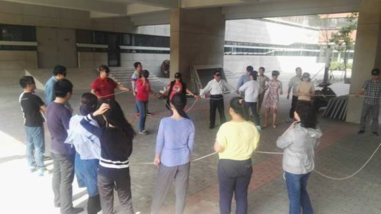 值软件学院15周年院庆之际,由学院党委主办,院办教学办党支部承办,其他教工党支部协办的“院庆杯”教工党支部素质拓展团队训练活动,于5月17日下午14时,在浑南校区信息楼B座一楼北侧广场成功举办。本次活动邀请了东北大学能力拓展中心软件学院学生蒋辉、王东杰、韩远方以及软件学院团委素拓部部长武纬伦作为活动教练,软件学院各教工党支部书记带领各支部党员及部分青年教师参加了此次活动。