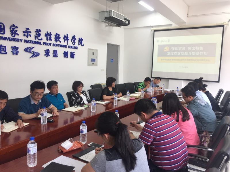 6月7日下午,软件学院院办教学办党支部与中荷学院机关党支部开展“强化本源,突出特色,发挥党支部战斗堡垒作用”支部交流会活动,会议由软件学院院办教学办党支部书记陈晨主持,软件学院党委书记陈欢、副院长庞洪江和中荷学院党委书记郝建山、副院长姜永生及两个支部全体党员参加会议。