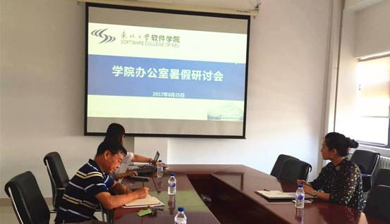 2017年8月25日上午,软件学院院办暑假工作研讨会在浑南校区信息学馆B507会议室顺利召开。