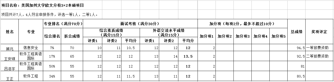根据东北大学软件学院2012年4号文件—《东北大学软件学院本科生赴境外交流项目资助办法(修订)》中的相关规定,经过专业综合排名及面试(含综合素质及外语交流水平)考核,公布参加2018秋赴境外交流旅费资助考核结果如下(共7人参加项目):