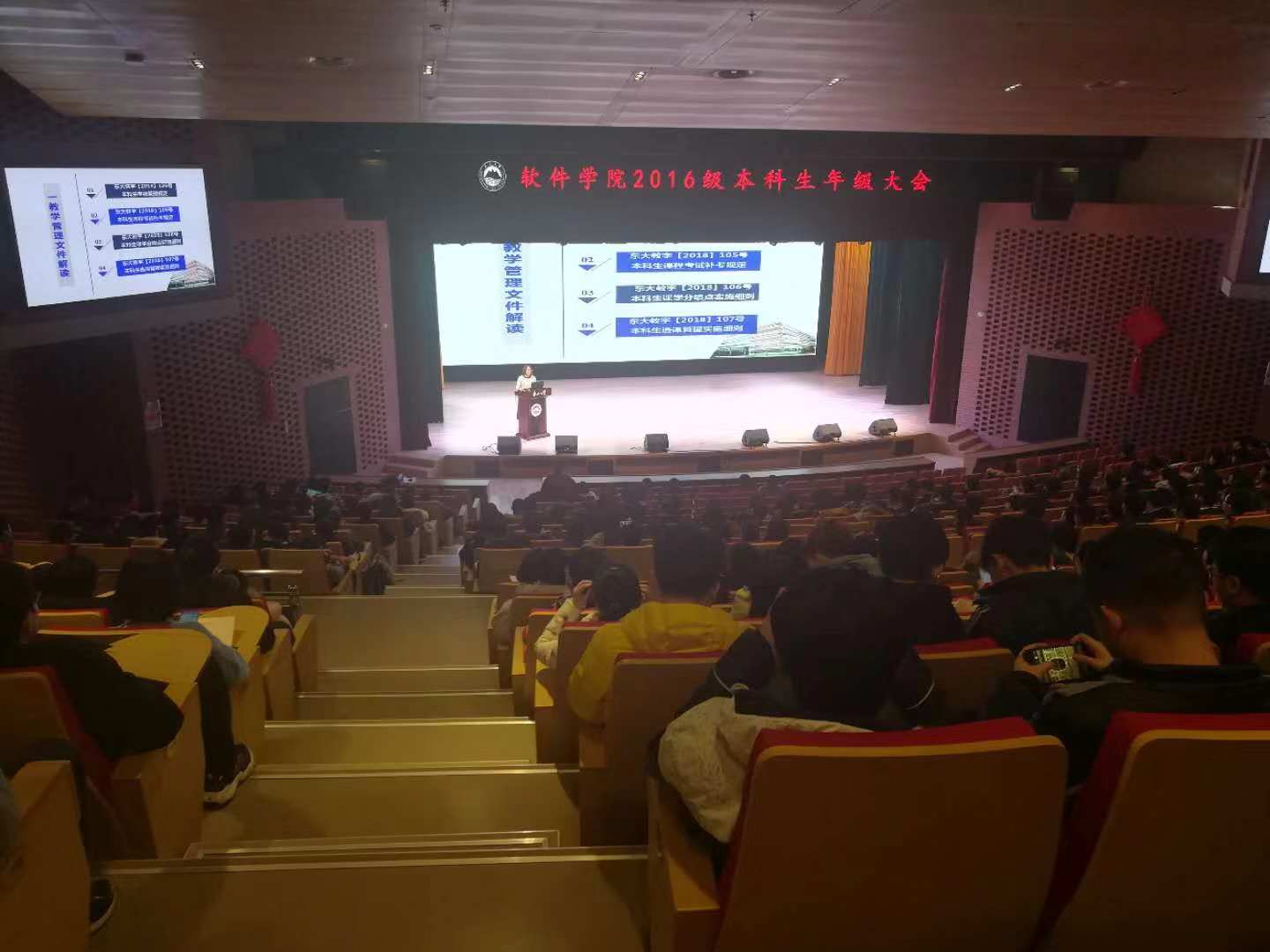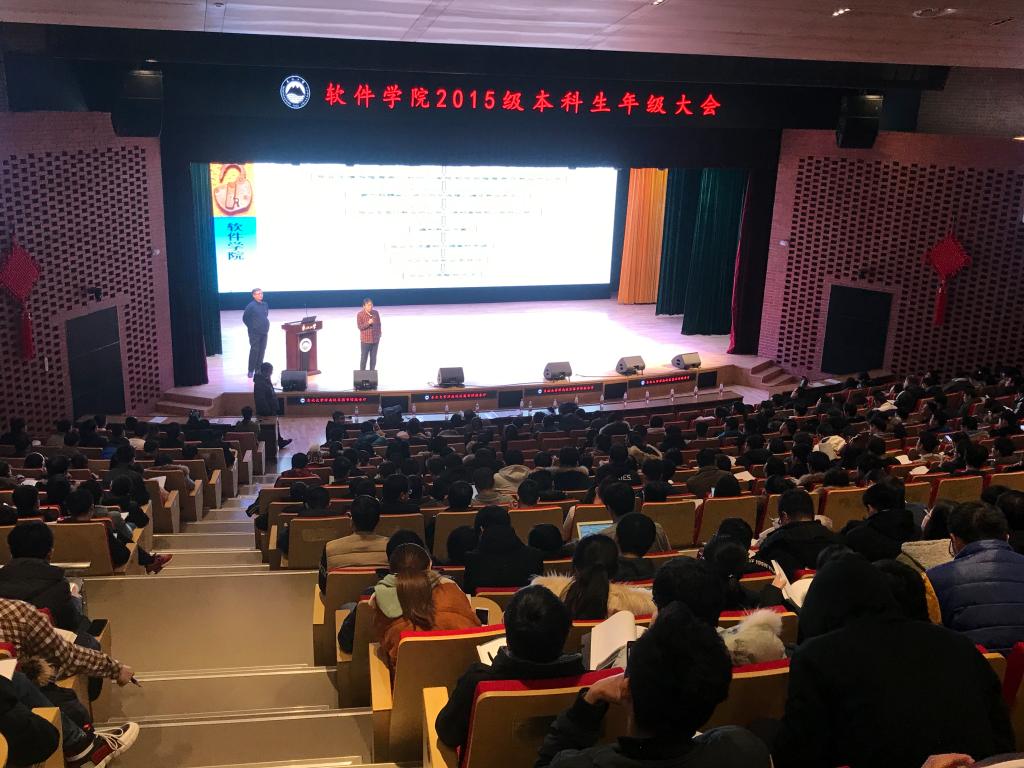 软件学院教学办和学生办协同合作,从12月8日起至21日,在浑南校区图书馆学术报告厅,分阶段分年级分别召开了在校生各年级全员参与的各年级大会,副院长程维和党委副书记兼副院长刘春风分别就教学管理和学生管理工作讲话,院长助理王瑞平、各专业系主任及教师、教学办本科教学相关人员、学生办各年级辅导员参加大会。