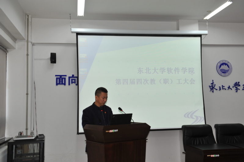 2019年11月20日下午,软件学院第四届四次教职工大会在浑南校区信息学馆B520召开。校工会副主席孙东来,生命科学与健康学院党委书记郑虹、教代会执委沈河校区管理委员会副主任周军、体育部工会主席王景利、科技产业集团工会主席孟庆旺出席,软件学院全体教职工参加了会议。