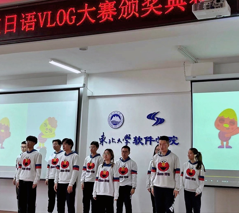 12月23日中午12:00在信息楼B520召开了2020年度东北大学软件学院首届日语VLOG大赛颁奖典礼,软件学院滕超书记、学院工会张骁副主席、19级辅导员李欣妍老师以及软件学院的日语李妲老师、王书睿、徐捷莅临现场,百余名学生参会。典礼上滕书记对活动给予了很高的评价,同时为活动出谋划策,鼓励大家将活动传承下去,有课未能到场的主管国际化的于瑞云副院长也特地发来道贺视频,号召大家多多参与学院的国际化活动。到场的学生们也都备受鼓舞,各显身手,用日语为大家献上了歌曲、配音、小品等精彩的表演。
