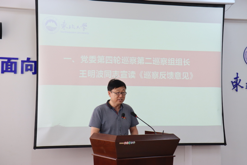 7月22日上午,东北大学党委第四轮巡察第二巡察组巡察软件学院反馈意见大会在浑南校区信息学馆B520室召开,校党委巡察工作领导小组成员、校纪委副书记、党委巡察工作办公室主任王剑,党委第四轮巡察第二巡察组组长、体育部党总支书记王明波及第二巡察组成员,党委巡察工作办公室全体人员出席会议。软件学院领导班子成员、教职工代表以及学生代表90余人参加会议,会议由软件学院院长张斌主持。