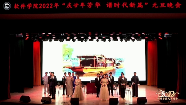 伴随着开场舞《少年》晚会正式开幕;相声节目《南北差异》幽默诙谐,展现南北不同文化习俗;歌曲《音乐电台》《背对背拥抱》声入人心,唱出青春动人旋律;街舞串烧《Feeling》、民舞《怎叹》舞姿灵动,演绎软件学子别样风采;乐队演奏《天外来物》《盛夏光年》活力四射,青春活力引爆全场;情景剧《红船》、乐团演奏《StarSky》振奋人心,以别样的方式送上对伟大祖国的美好祝愿;合唱《仰望星空》《你的答案》温情流露,如冬日暖阳动人心弦。在合唱《少年中国说》的激昂歌声中,软件学院2022年“庆廿年芳华,谱时代新篇”元旦晚会落下帷幕。