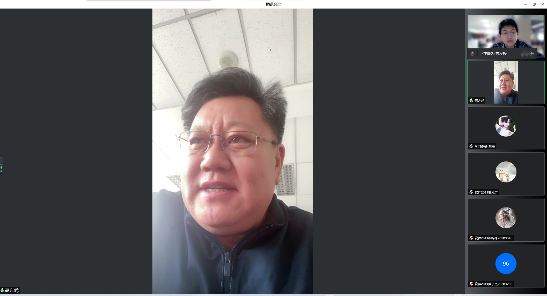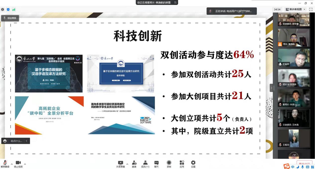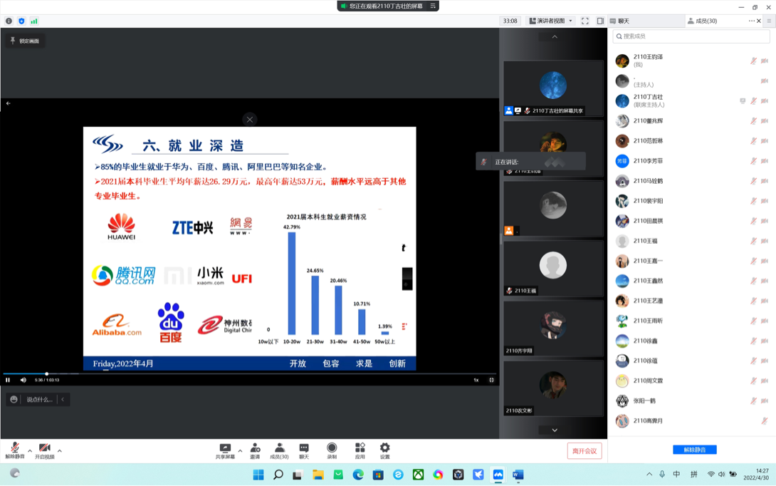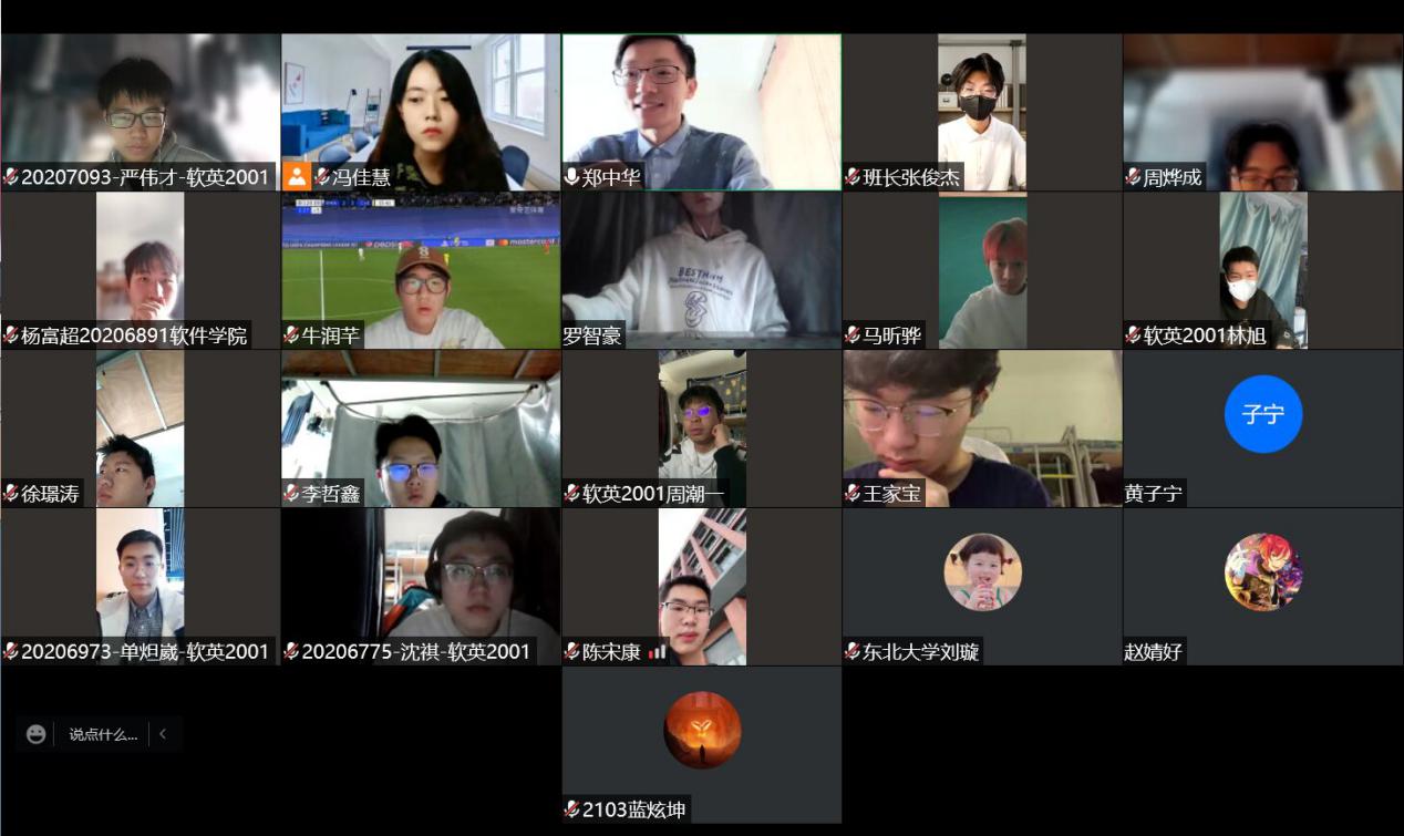 王裕民老师对接软件2001班,线上座谈中王老师聆听了班级发展情况和班集体建设“五育”工程进展,同学们聆听了王老师关于鼓励同学们投身科技报国的教诲。