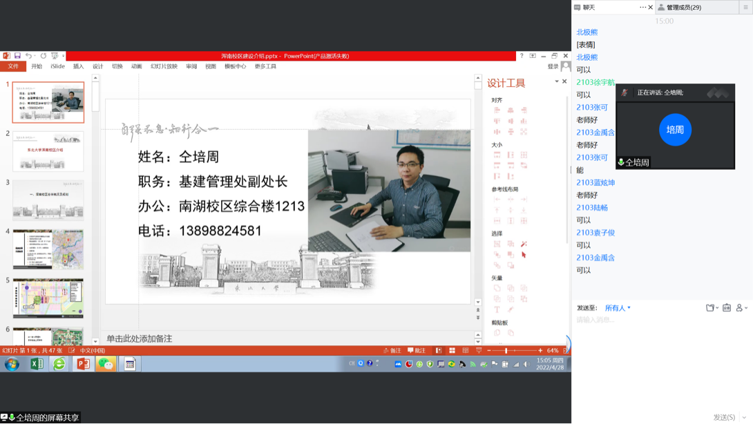 高方武老师对接软件2011班,全程参与了班级的线上团日活动,并激励大家勇敢创新,争做情怀深、思维新、视野广的学习者和战斗者,坚持科技报国,担当新时代赋予的使命。