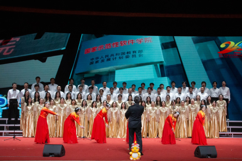 晚会在由学院党委书记滕超指挥,师生混声大合唱《祖国不会忘记》、软件学院院歌《青春的光彩》中落下帷幕,现场气氛热烈,抒发了软件学院师生对伟大祖国的由衷热爱和新百年起点上对新时代、新生活的美好期待。