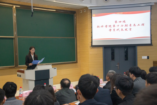 10月28日,软件学院第十七期“青年马克思主义者培养工程”学生骨干培训班开班仪式在浑南校区一号教学楼举行。校团委副书记张兆磊老师,马克思主义学院党的建设研究所执行所长段炼,软件学院党委书记滕超,党委副书记、副院长【兼】王慧琦,党委组织员范佳昕,学生工作办公室副主任刘璇,辅导员卢鋆、孙明凯出席仪式。软件学院团委书记李欣妍主持仪式。软件学院第十七期“青年马克思主义者培养工程”全体学员参加仪式。