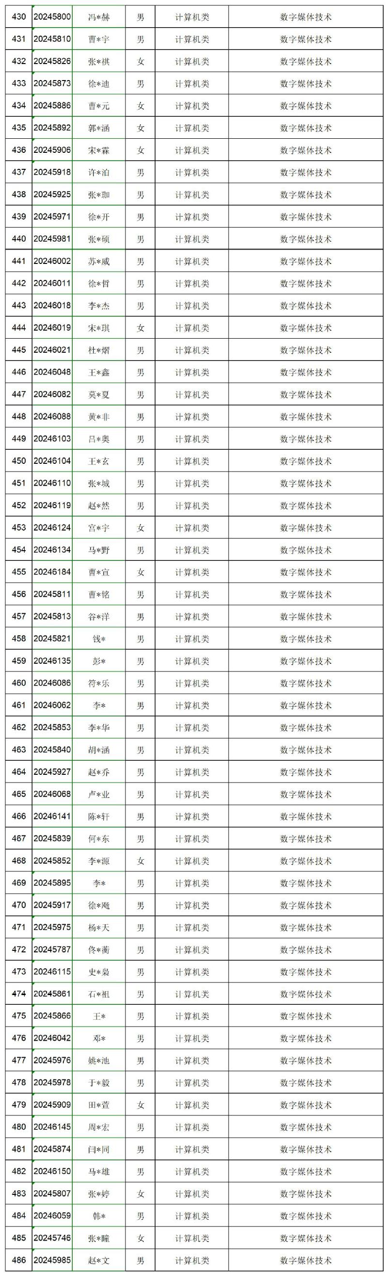 软件学院2024—2025学年大类招生本科生专业分流结果