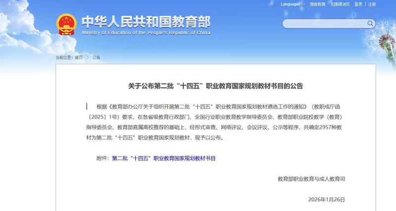 近日,经形式审查、网络评议、会议评议、公示等程序,第二批“十四五”职业教育国家规划教材名单正式发布。其中,我院张爽老师主编的《软件工程原理与方法(微课版)》课程成功入选。