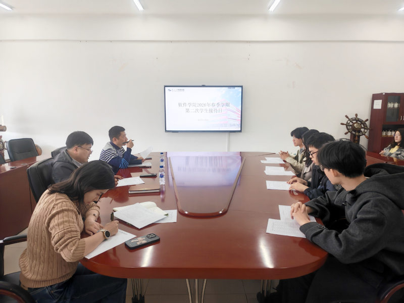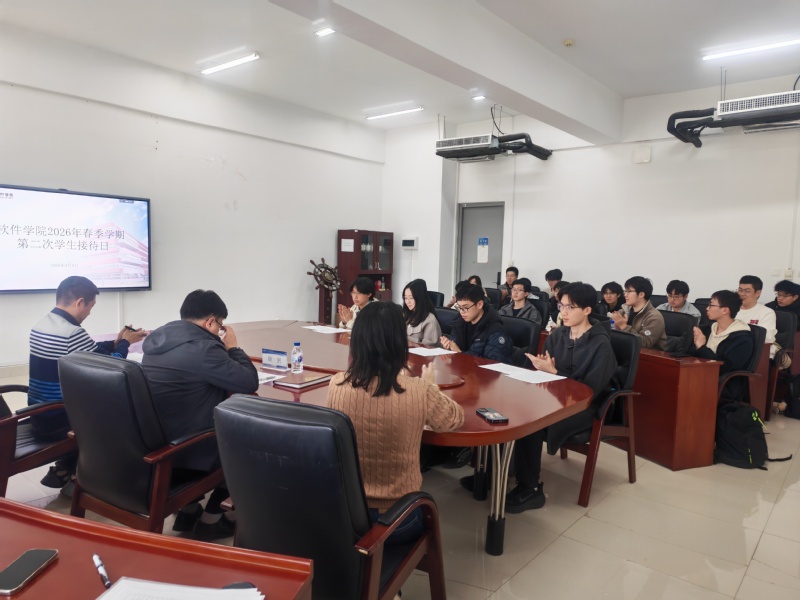 2026年4月8日,软件学院于浑南校区信息学馆B座539室开展2026年春季学期第二次学生接待日。学院副院长徐剑、梁振及相关部门负责同志出席,来自各年级的21名本科生代表参加活动。